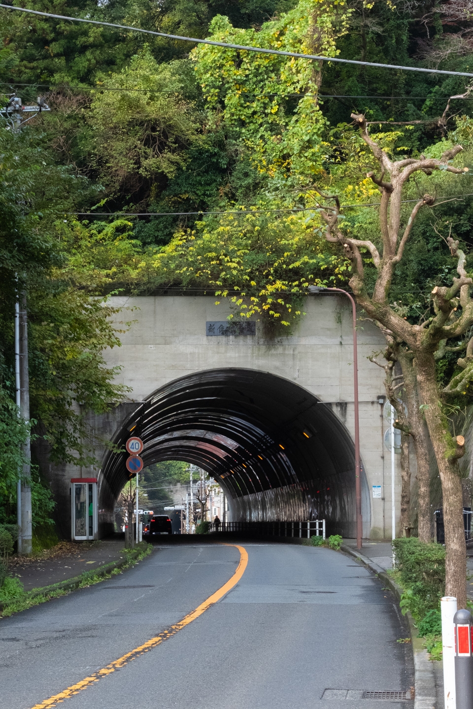 A road tunnel through the mountain. Behind the train station in Kamakura.